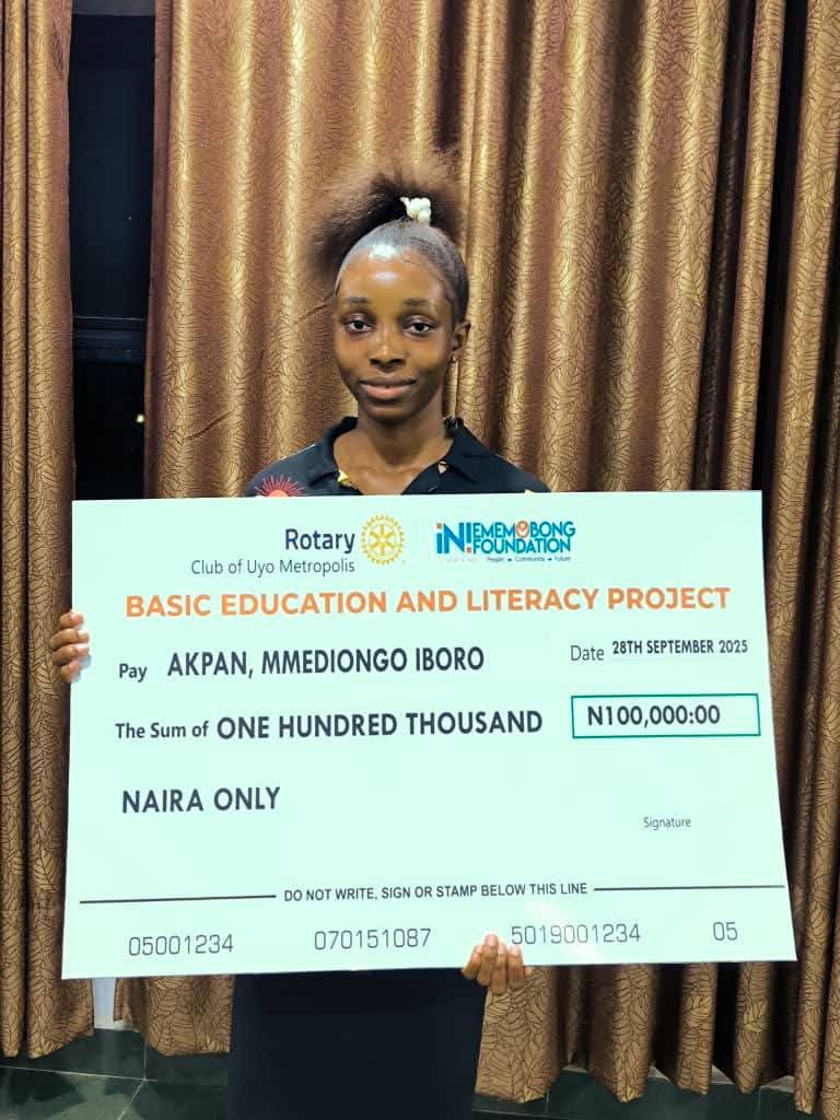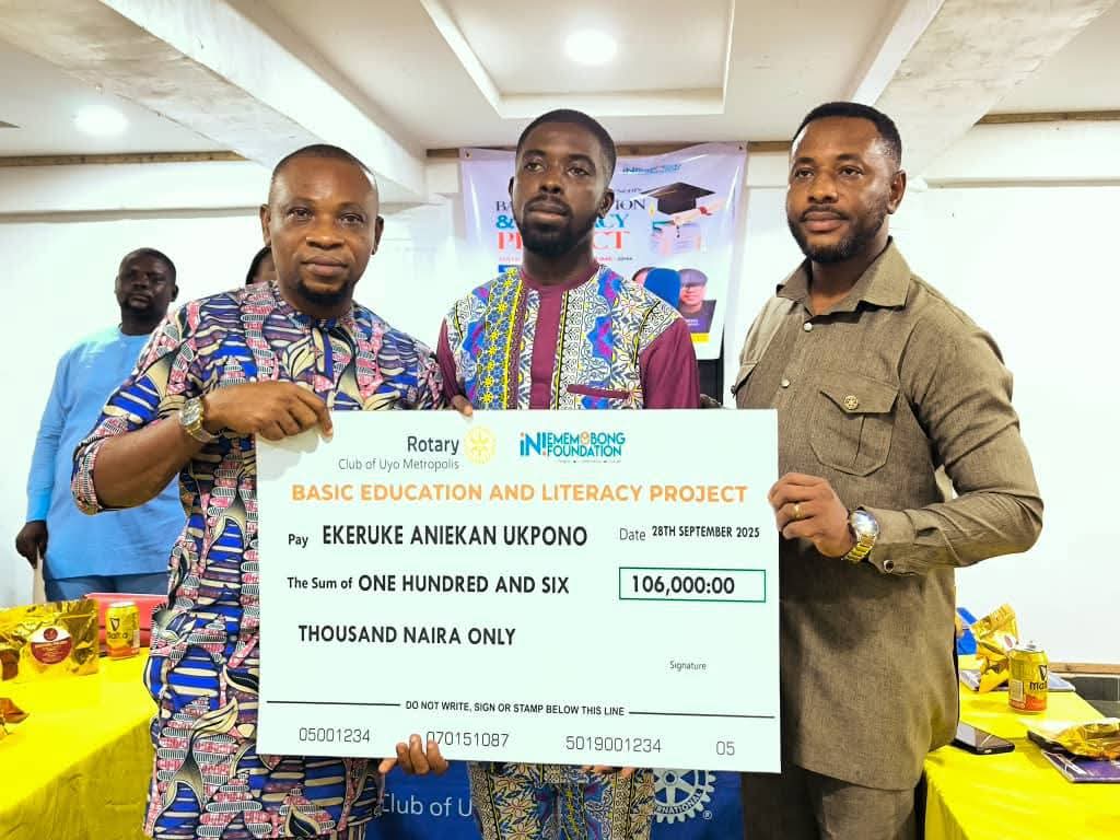As part of its Basic Education and Literacy Programme, the Rotary Club of Uyo Metropolis, in collaboration with the Ini Ememobong Foundation, on Sunday, awarded scholarships covering the tuition fees for 10 underprivileged students at the University of Uyo for an entire academic year.